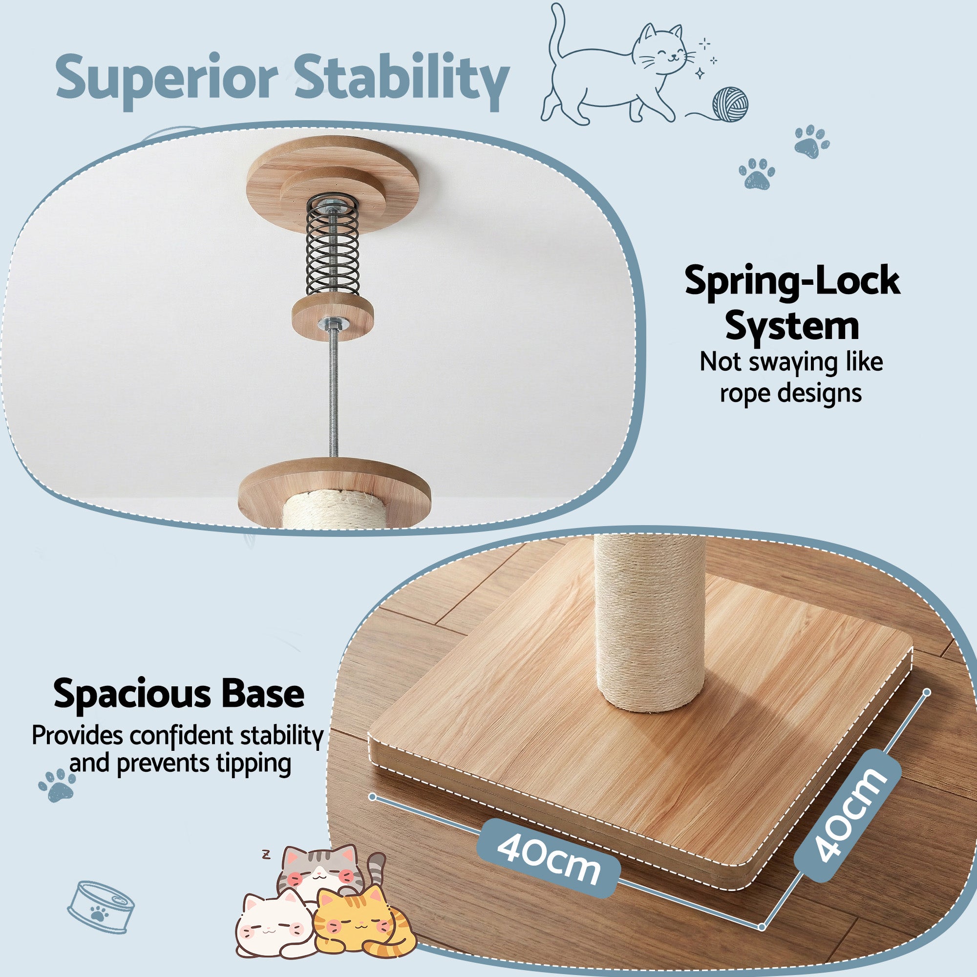 i.Pet Cat Tree Tower Floor to Ceiling Scratching Post 270cm Beige