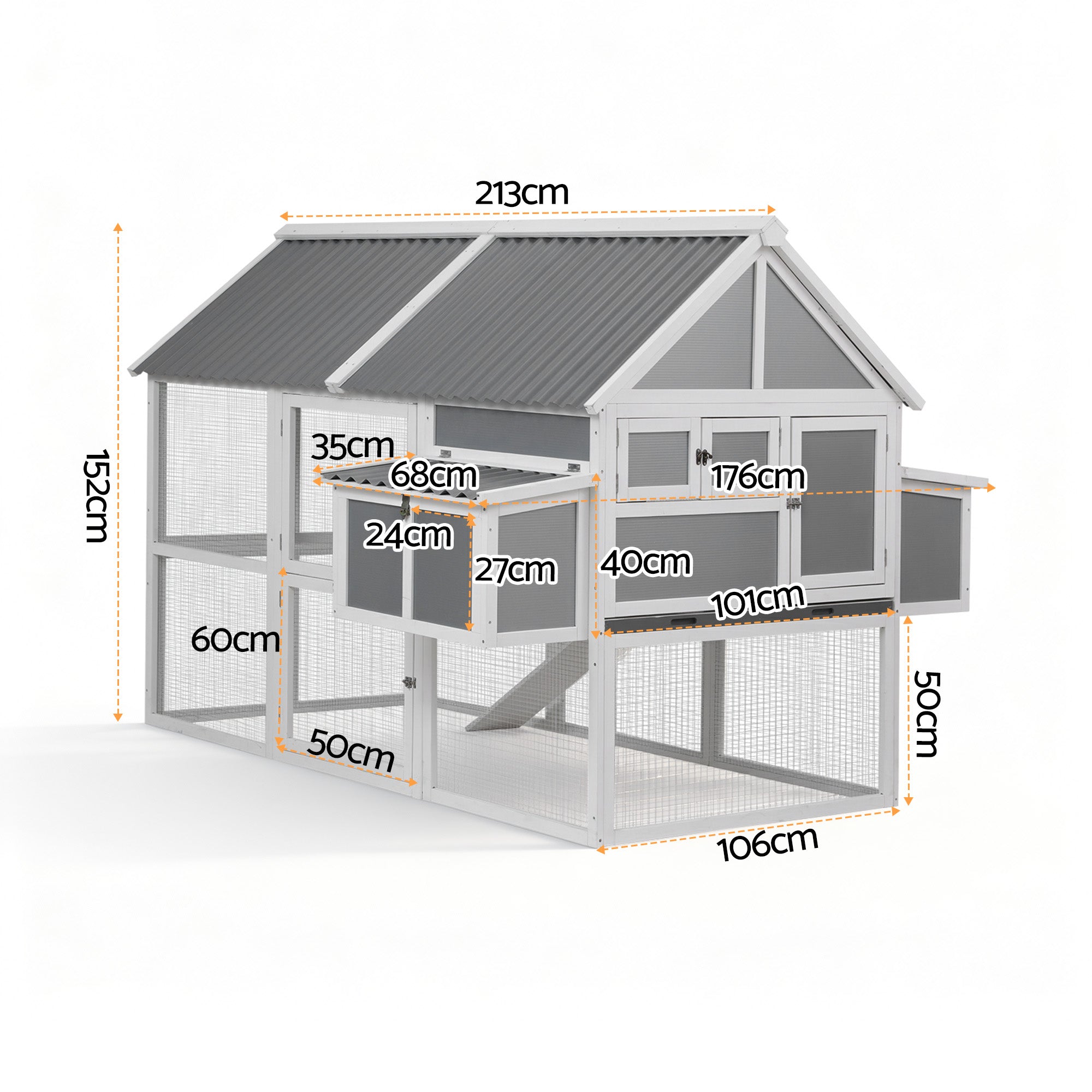 Crafted from durable fir wood and featuring a weather-resistant, sloped PVC roof, this chook house is built to handle our sunny days and rainy spells. The tough, galvanised mesh and secure latches are designed to keep your poultry safe from predators, giving you peace of mind.