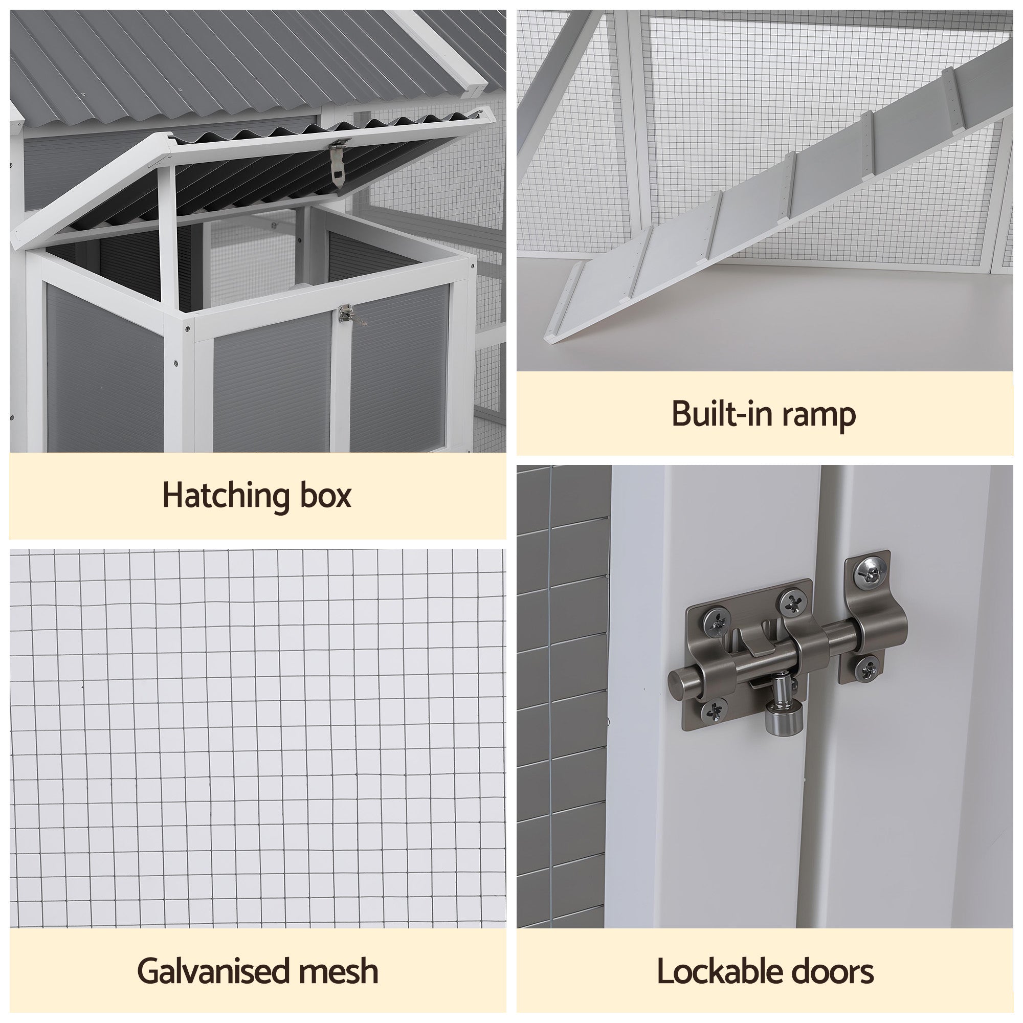 Your hens will love the spacious enclosed play area, complete with an integrated ramp for easy access. The dedicated hatching box makes collecting your daily fresh eggs a breeze. Best of all, clean-up is simple with the convenient slide-out tray, making regular maintenance quick and easy.